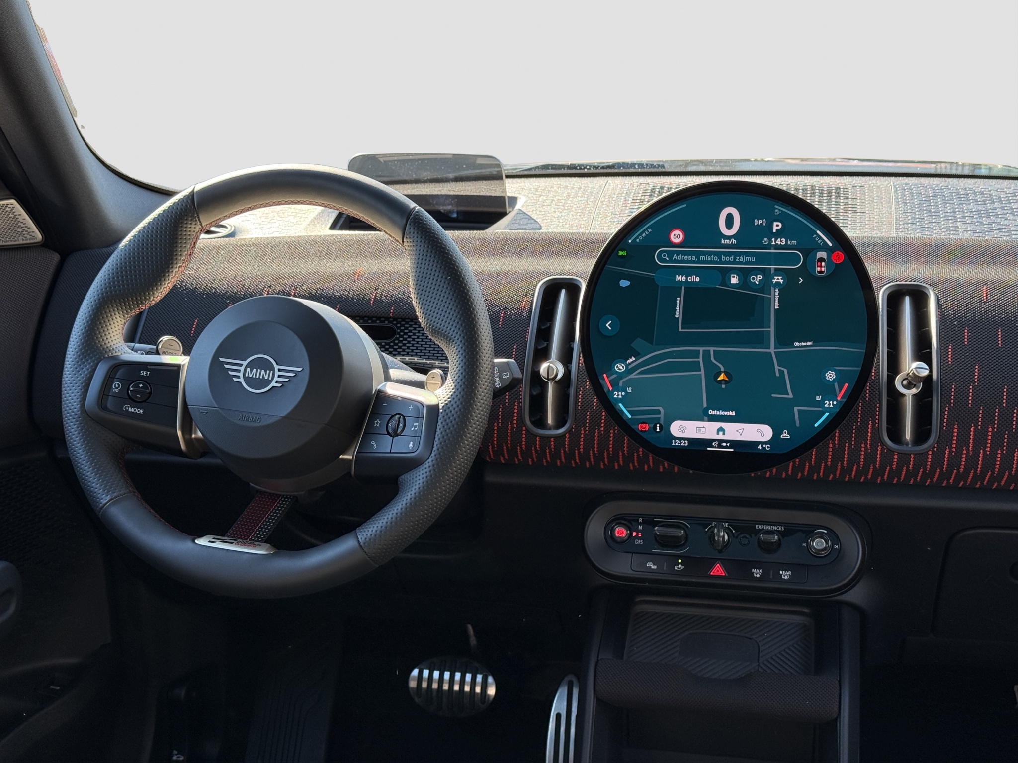 MINI Head-Up Displej se inspiruje technologií v kokpitech letadel a zobrazuje vše, co potřebujete vědět, přímo ve Vašem zorném poli. Průhledná zobrazovací plocha instalovaná na palubní desce předkládá hlavní údaje, jako je rychlost jízdy, mapy, činnost asistenčních systémů a podrobnosti infotainmentu. MINI Head-Up Displej je dokonale čitelný a poskytuje vynikající kvalitu obrazu i za přímého slunečního světla. Můžete si snadno nastavit výšku a jas a přizpůsobit zobrazované informace svým potřebám. Zobrazení se také mění podle zvoleného režimu Experience, takže si užijete konzistentní a ucelený zážitek z pobytu uvnitř vozu, a přitom zůstanete plně v obraze.